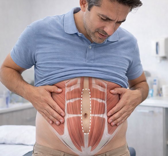 Si presentas separación abdominal (diástasis), bultos como lipomas o quistes, o infecciones como abscesos, una valoración médica permite identificar la causa y definir el tratamiento más adecuado.